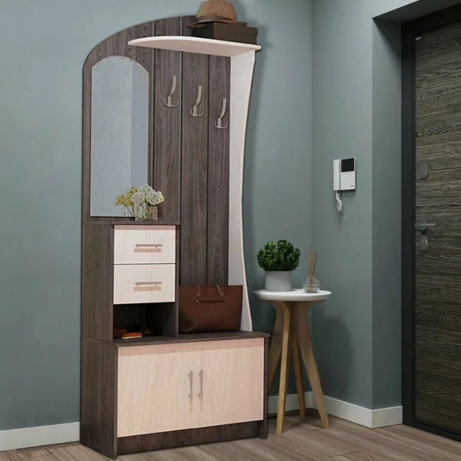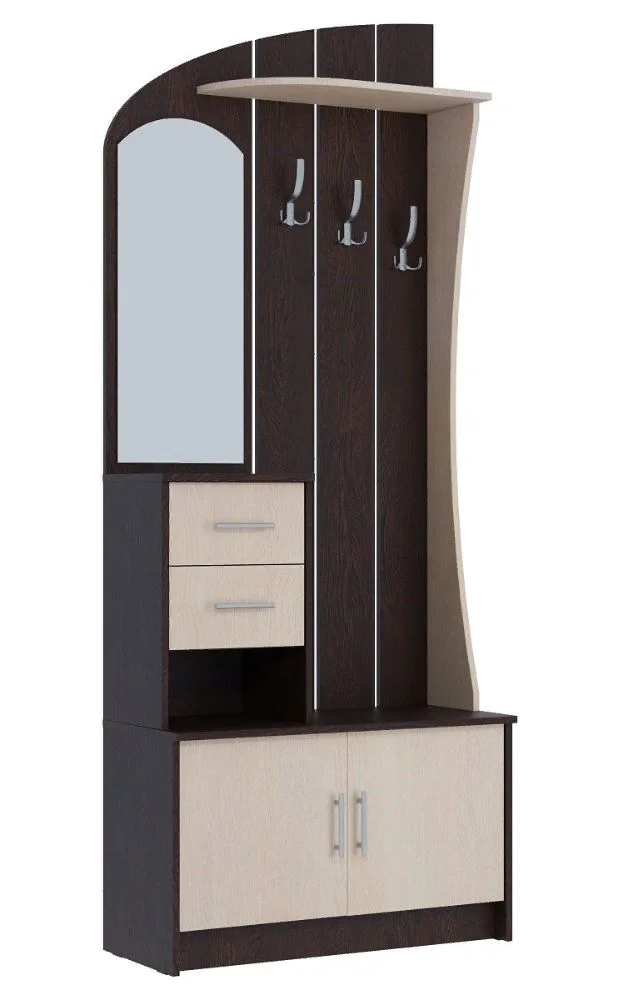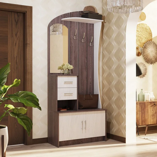 Комплектация: в комплект прихожей входят зеркало, вешалка, обувница и комод, что позволяет максимально эффективно использовать пространство и обеспечивает комфорт при использовании.