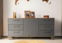 Комод устанавливается на ножки из массива дерева, которые регулируются по высоте. Это позволяет адаптировать комод под любой интерьер и обеспечить устойчивость на неровных поверхностях.