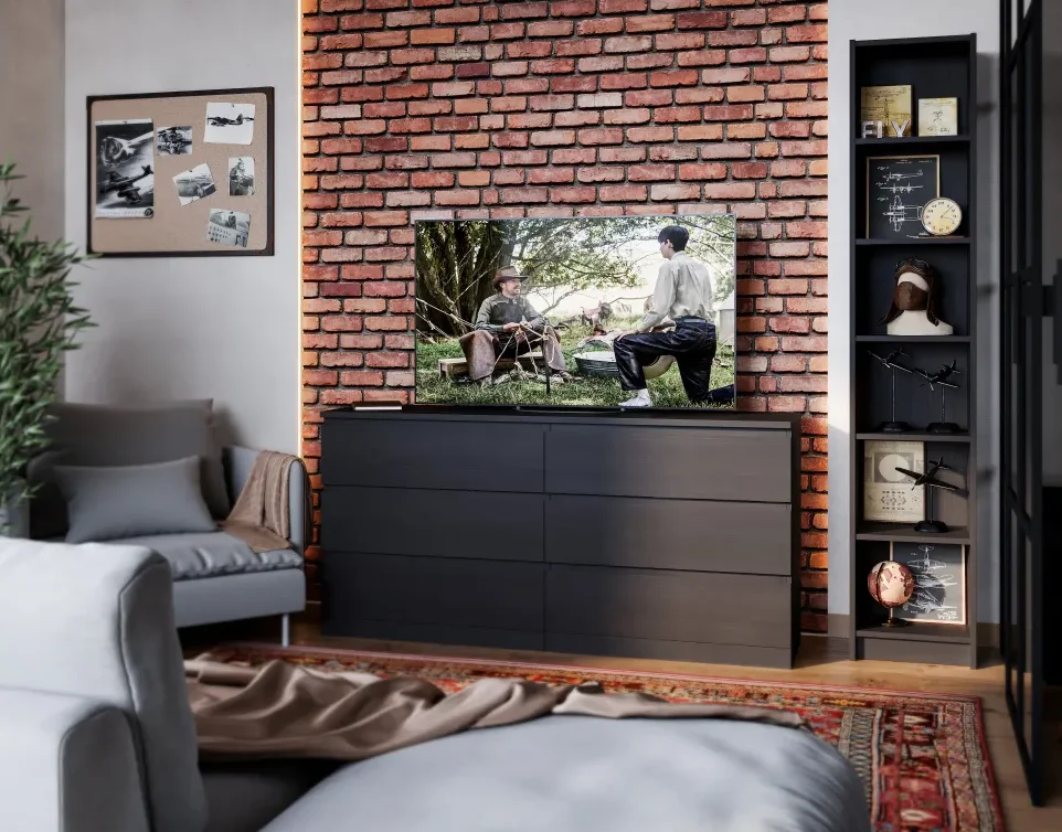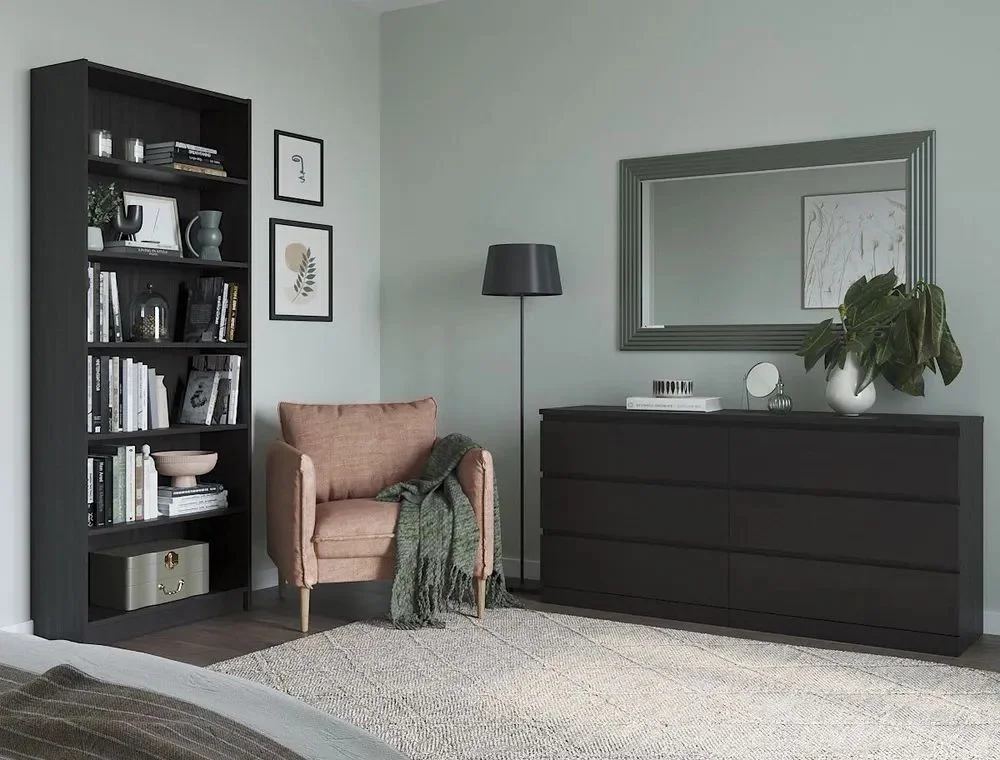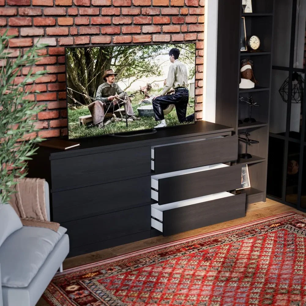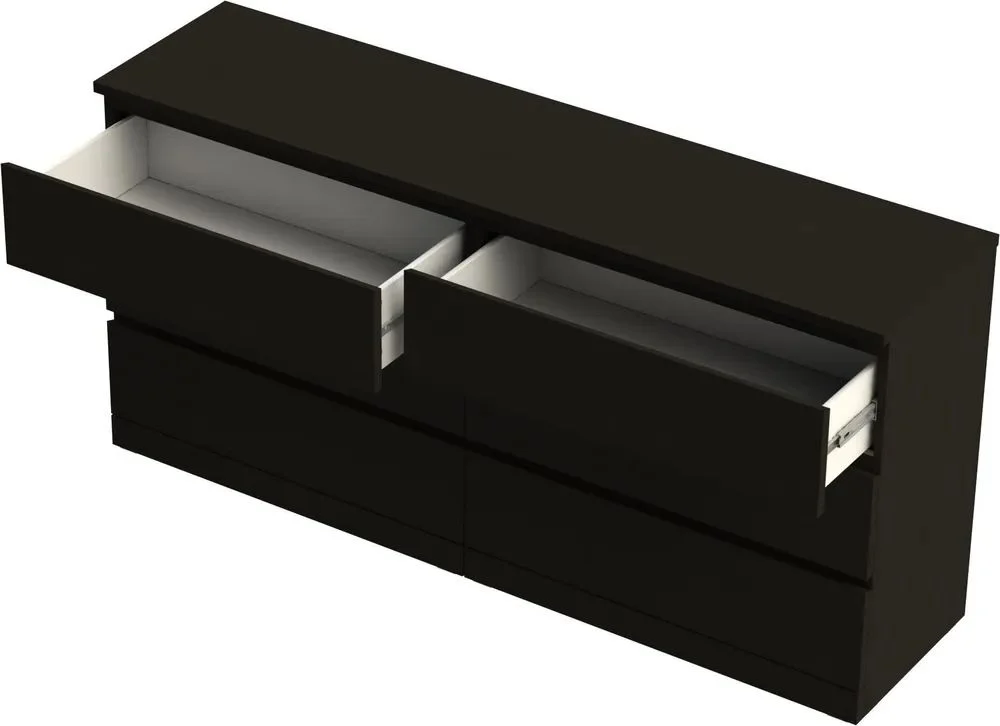 Ящики на шариковых телескопических направляющих полного выдвижения европейского производства, фирма GTV, рассчитаны на нагрузку до 8 кг, высота направляющих 35 мм, без доводчиков. Корпус ящиков: ЛДСП. Пластиковые ножки высотой 5 мм. Цветовое решение шпон, черный.