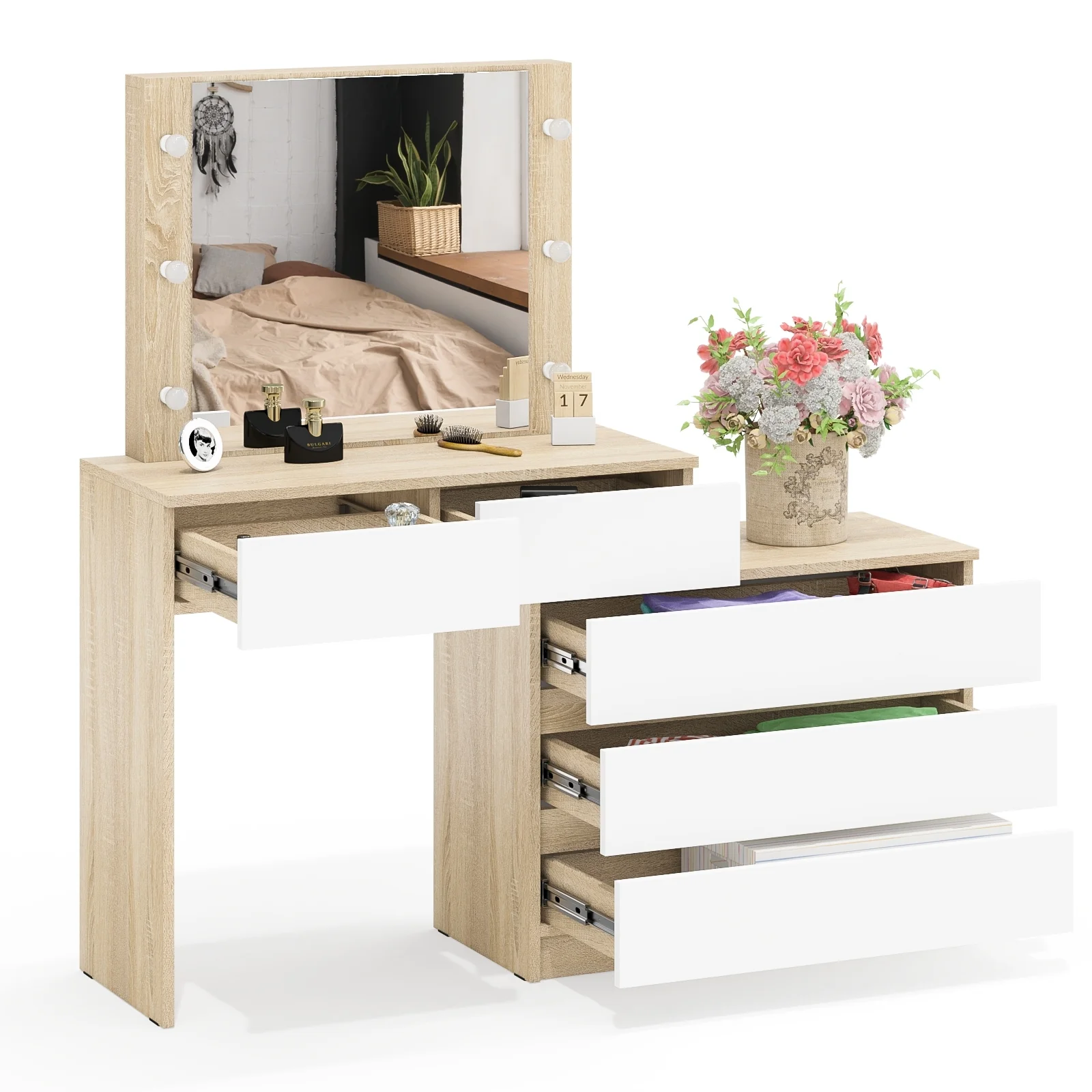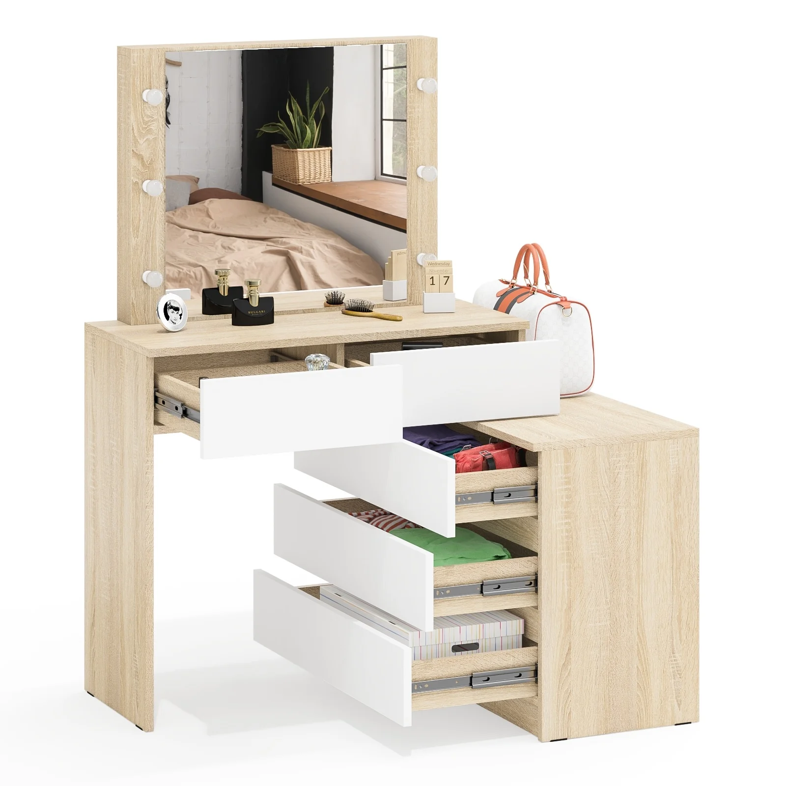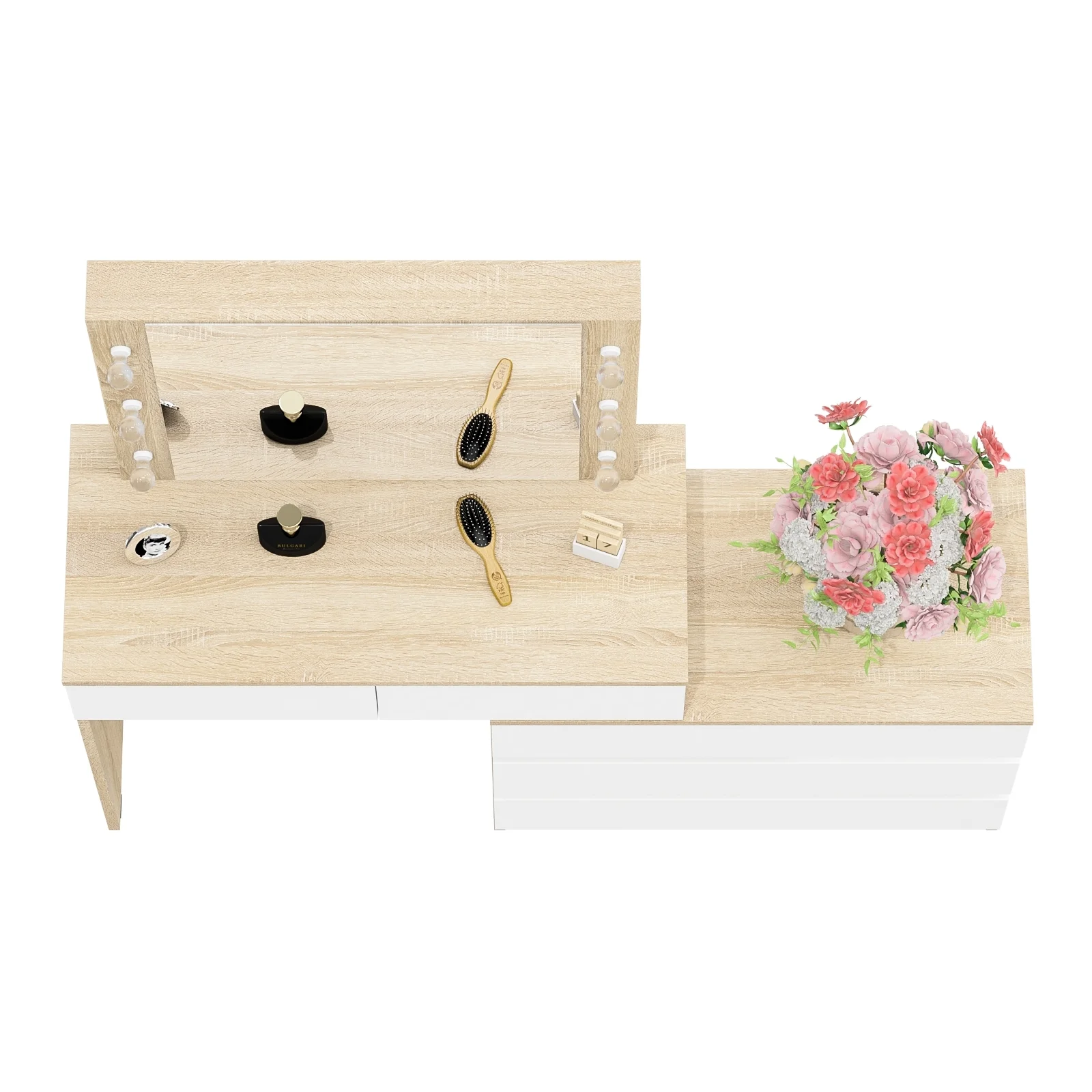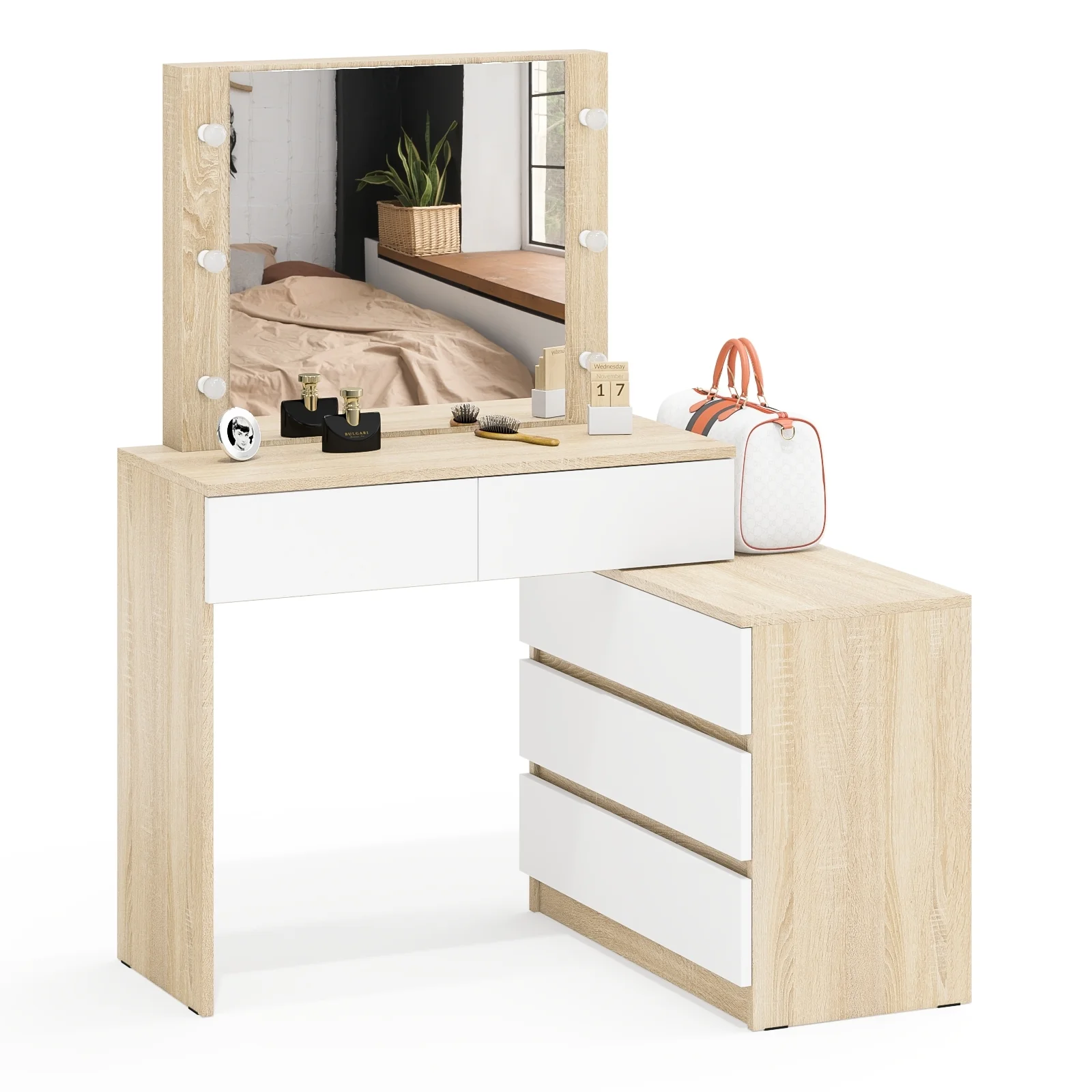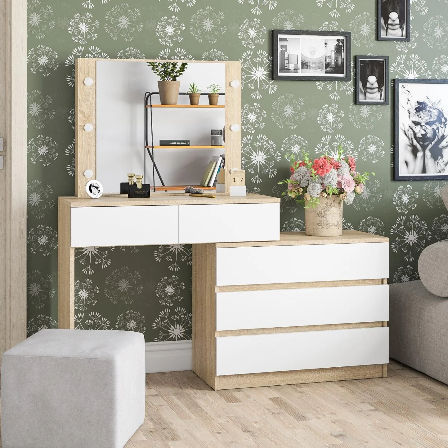 Габаритные размеры туалетного столика (ШхГхВ): прямого 142 х 40 х 142,5 см, углового - 111 х 80,4 х 142,5 см.