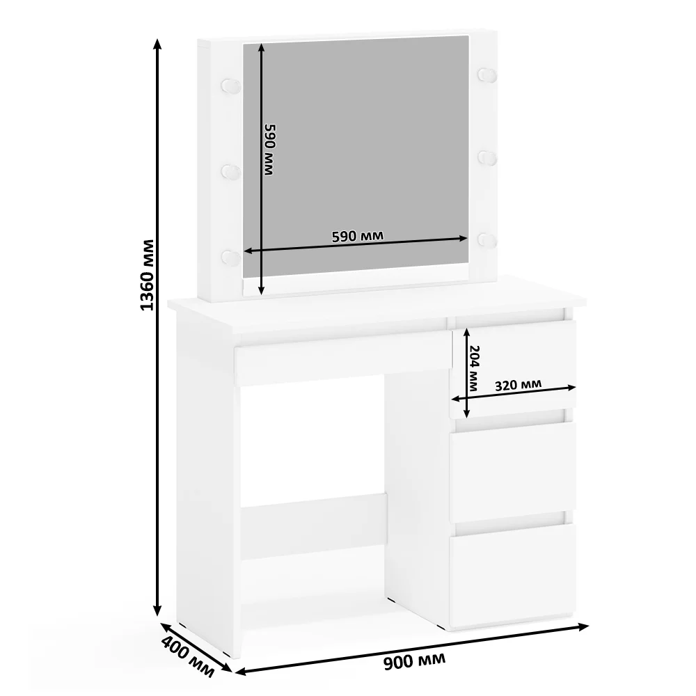 Габаритные размеры стола (ШхГхВ): 90 х 40 х 136 см.