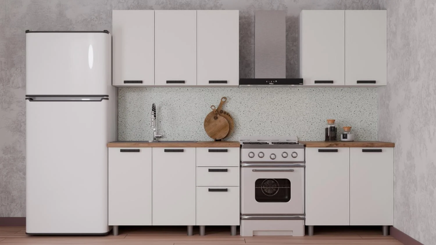 Комплектация: кухонные модули 6 шт, фурнитура, инструкция по сборке.