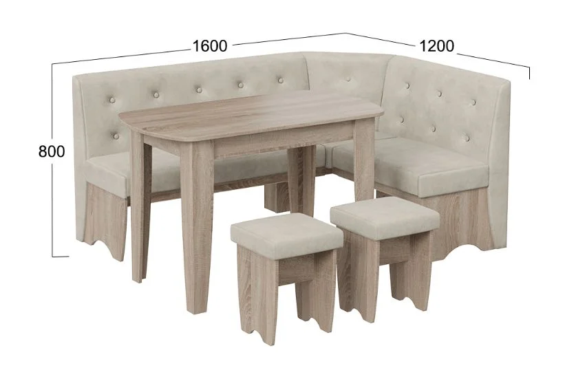 - Размер угловой скамьи: 1600 х 1200 х 800 мм