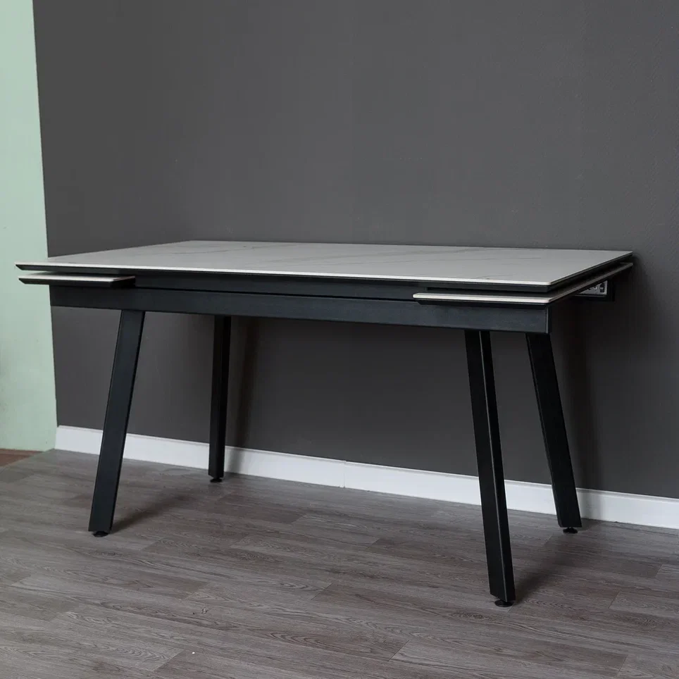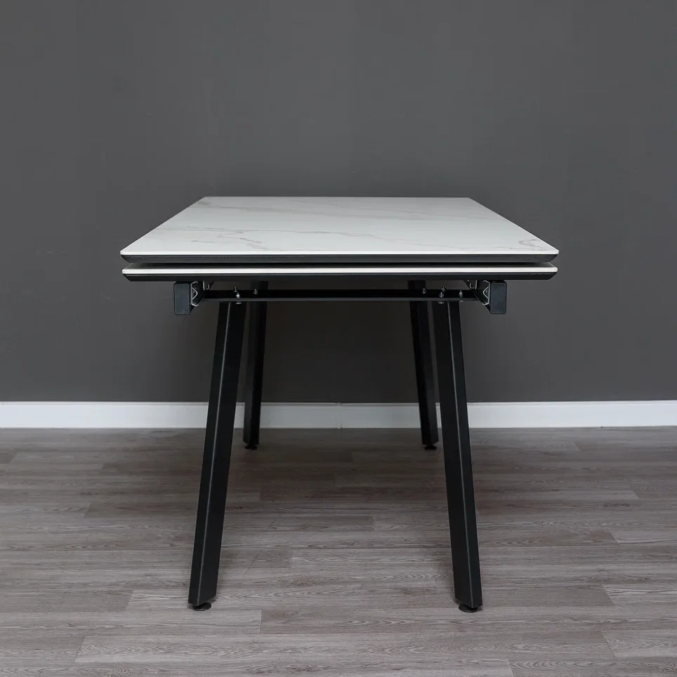 Регулируемые шарнирные опоры позволяют выставить стол по уровню. Механизм раздвижения - Германия. При раздвижении столешницы, рисунок сохраняется остается цельным. Максимальная нагрузка: 80 кг. Размеры: Длина: 1400 мм. Ширина: 800 мм. Высота: 740 мм. В сложенном виде комфортно размещаются до 6 человек, в разложенном до 8 человек. Боковые вставки добавляют по 30 см с каждой стороны.