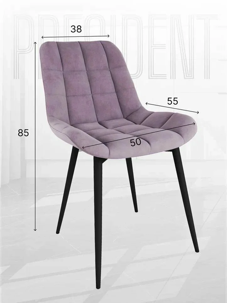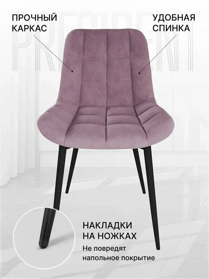Обивка стула выполнена из велюра пудрового цвета. Этот материал не только приятен на ощупь, но и обладает антивандальными свойствами. Это значит, что стул не будет испорчен домашними животными или маленькими детьми.