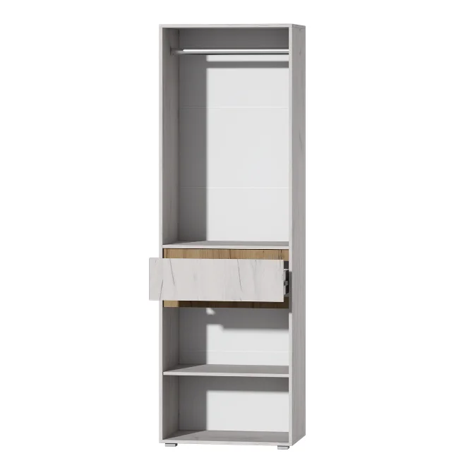 Этот шкаф является частью модульной гостиной. Размеры и конструкция шкафа позволяют удобно разместить вещи. Модульная система даёт возможность гибко подходить к организации пространства.