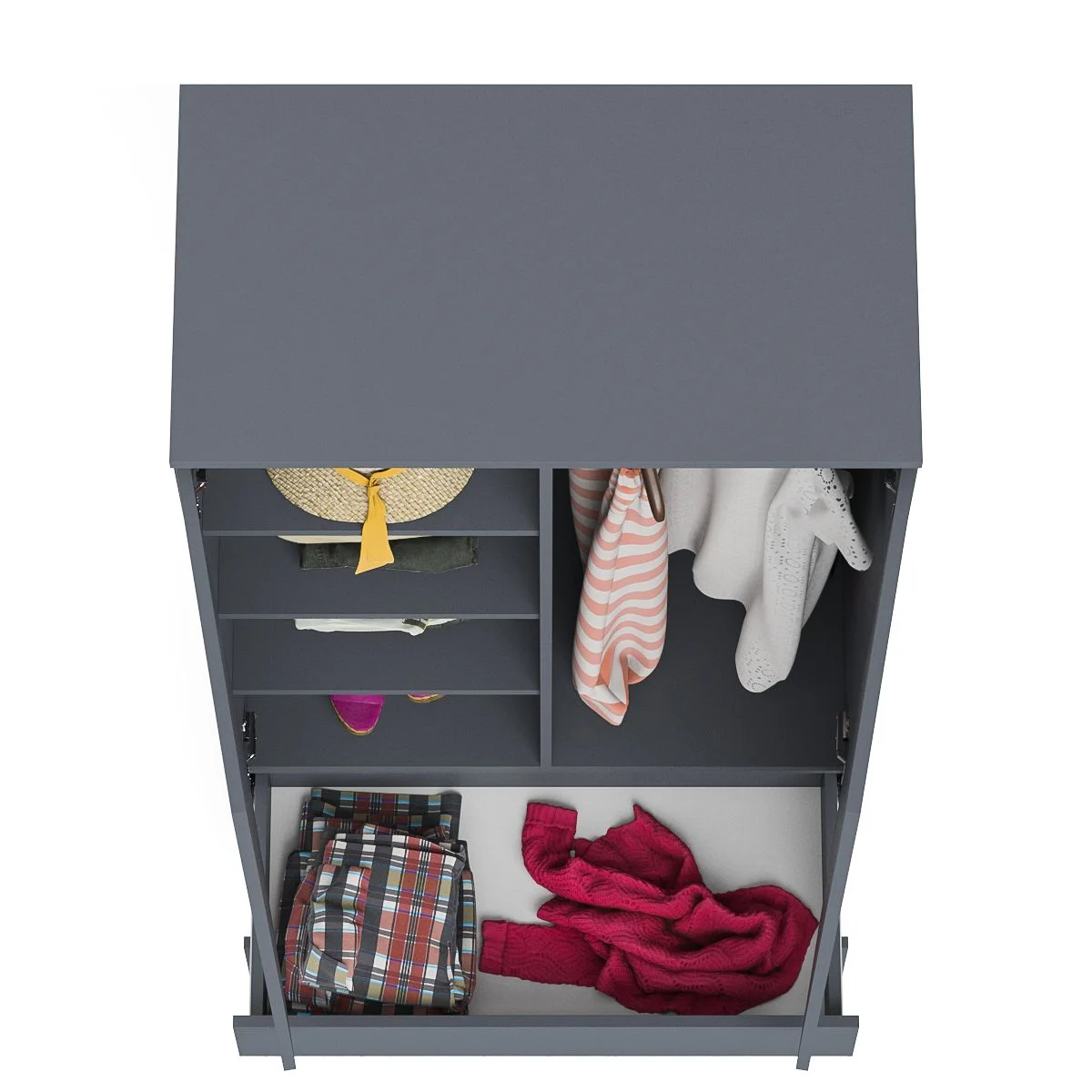 Современный дизайн и функциональность шкафа Мори МШ 900.1 делают его отличным выбором для любого интерьера. Графитовый цвет корпуса и фасадов из ЛДСП 16 мм с окромленными ПХВ плёнкой 0,4 мм торцами придают шкафу стильный и современный вид.