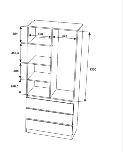 ВНИМАНИЕ! ШКАФ МОЖНО СОБРАТЬ НА ОБЕ СТОРОНЫ. (полки слева или полки справа)
