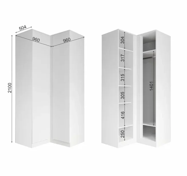 Угловой шкаф Мори МШУ 960.1 белый от ДСВ мебель – это сочетание практичности и современного дизайна. Белый цвет и угловая конструкция делают его стильным дополнением к любому интерьеру, будь то гостиная, детская комната, прихожая или спальня.